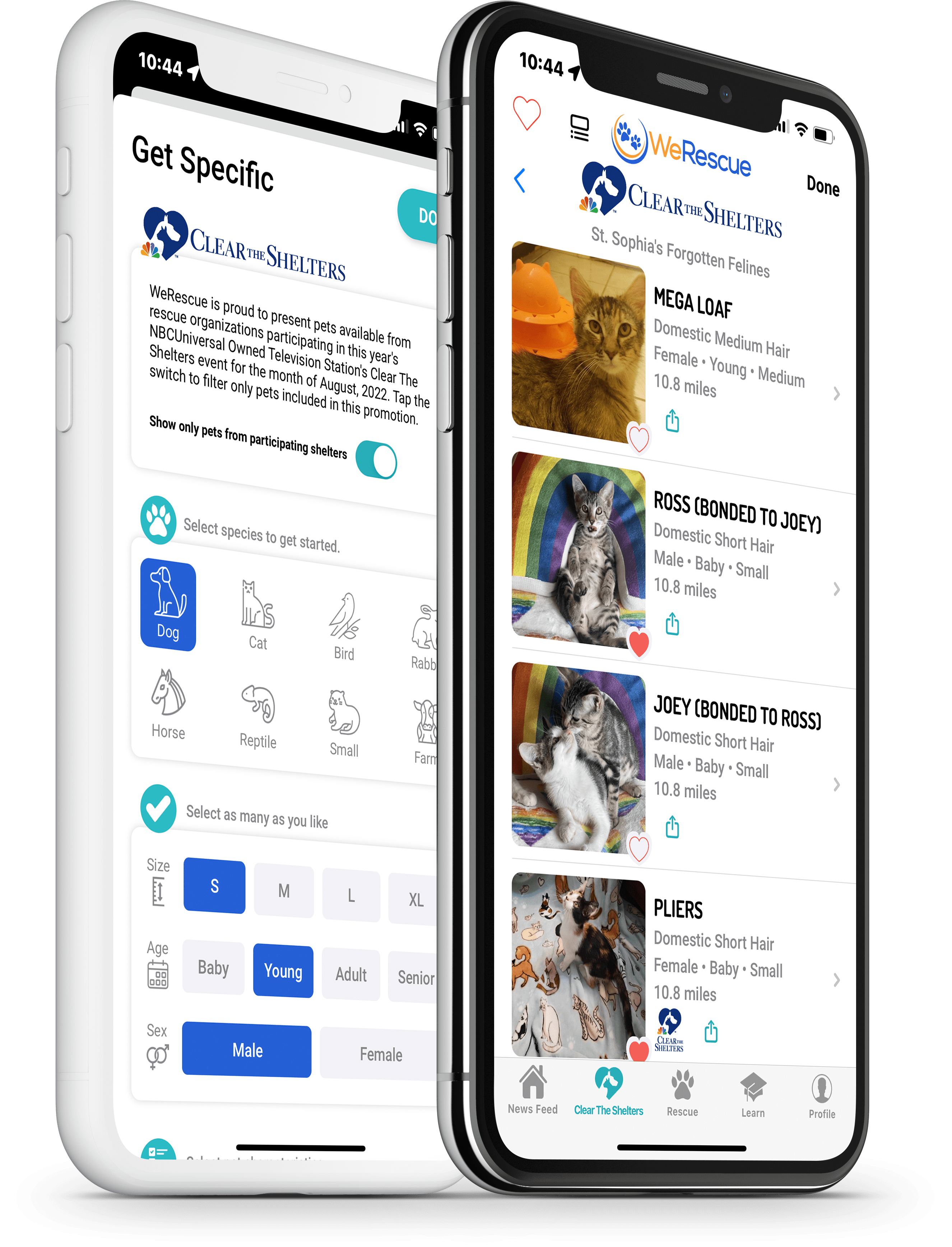 WeRescue saves your valuable time with advanced filtering of thousands of adoptable pets based on your needs.